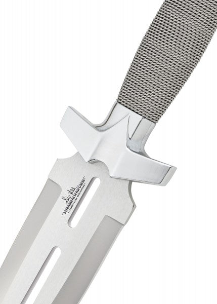 Gil Hibben, famoso por seus designs exclusivos de facas e lâminas, fez esta faca distinta especialmente para a United Cutlery em 1991. Ela mede aprox. Com 28,6 cm no total, esta adaga impressionante tem aprox. Lâmina de aço inoxidável 420 polida espelhada de 14 cm dividida em duas seções por um corte de lâmina incomum. A alça oferece uma alça enrolada em fio prateado que fornece uma pegada segura. Esta faca inclui o selo pessoal de Gil Hibben gravado na lâmina e uma bainha personalizada feita de couro genuíno.