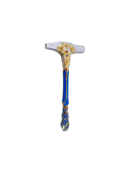 Martelo S4010 Martelo modelo de Celebrimbor o forjador dos anéis de poder. Réplica não oficial. O martelo é de cor níquel com detalhes dourados e cabo azul. Feito de resina. O tamanho total é 19,7 cm x 4,0 cm x 43,5 cm. Referência S4010