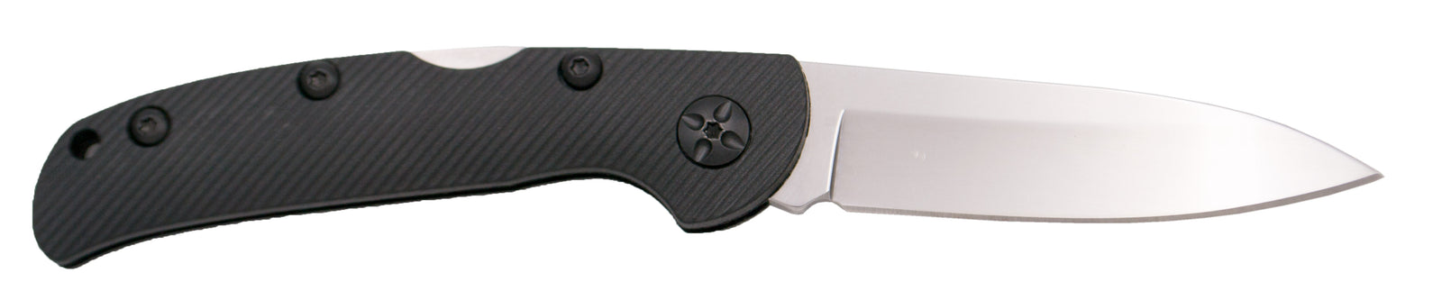 Terceira faca de travamento N76N, cabo de fibra de náilon preto, lâmina de aço inoxidável 420 de 8 cm com acabamento em brilho espelhado. Referência N76N