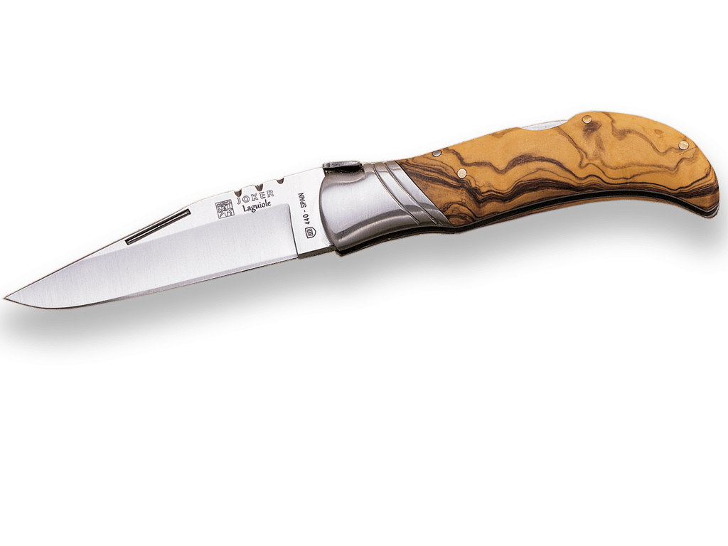 Faca de caça Laguiole com cabo de madeira de oliveira, virola de aço inoxidável e lâmina de 9,5 cm.