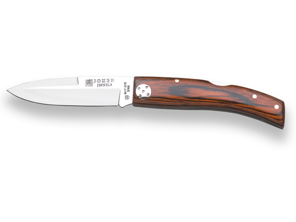 Faca esportiva com cabo de madeira vermelha e lâmina de 8 cm