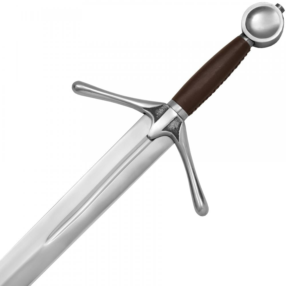 Com lâmina afiada de dois gumes e protetor de soquete - de onde se estendem os langlets. Tiras curtas de metal projetando-se do centro da área de proteção pela lâmina. Os quilhões halflang estão inclinados para baixo na direção da lâmina e completam a aparência deste estilo distinto de espada. Os botões são do tipo disco e geralmente apresentam uma face côncava. Na espada halflang é possível ver um design exclusivamente escocês que possui todas as características e características de manuseio das outras espadas em uso no resto da Europa Ocidental. O espigão completo desta espada é largo no cabo e é rebitado no topo do punho.