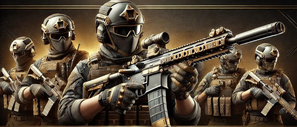 Feitos com materiais de alta qualidade, nossos rifles não oferecem apenas desempenho excepcional, mas também durabilidade excepcional. De polímeros resistentes a metais de nível militar, cada rifle é construído para suportar as condições mais exigentes do jogo.