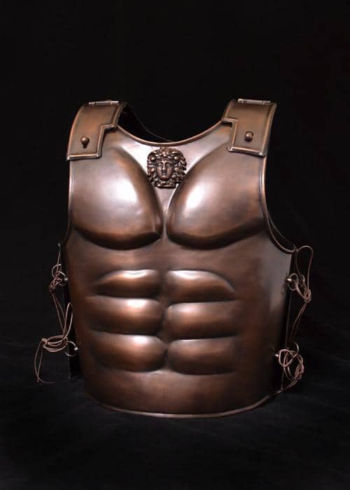 Este peitoral foi replicado por padrões históricos. Uma túnica grega ou romana e um capacete espartano bastam para completar a panóplia. Uma adição deslumbrante e bela a qualquer coleção, também em figurinos e produções de mídia adequadas.