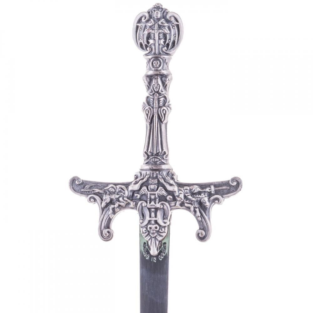 Incrível abridor de cartas da casa Marto com imagens de caveiras e asas de demônio, dando um aspecto sombrio.