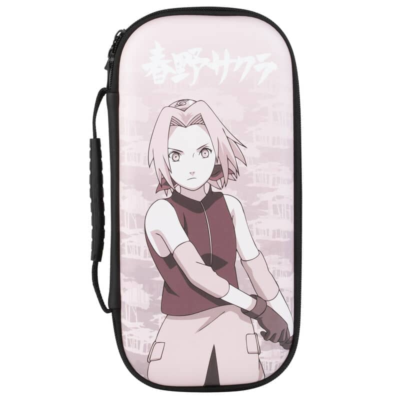 Estojo com alça de transporte. Compatível com Switch e Switch Lite. 1 rede de armazenamento para guardar seus pequenos acessórios adicionais, como cabo HDMI ou Joy-Con adicional. 8 compartimentos para guardar cartuchos de jogos. Estojo protetor com abertura dupla.