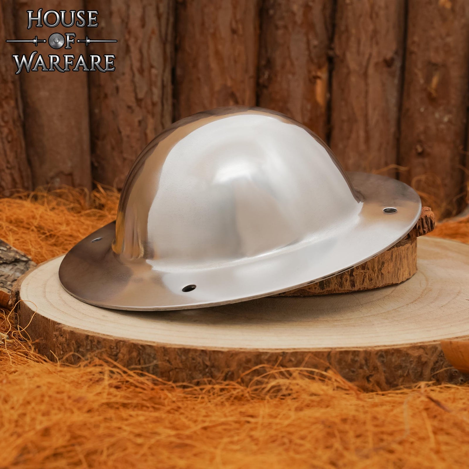 Quer esteja a montar um escudo de aquecimento personalizado ou uma bacia redonda tradicional, os orifícios pré-perfurados tornam a montagem fácil e segura. Protuberâncias de escudo como esta eram essenciais historicamente, não só para desviar os golpes de espada, mas também para reforçar a pega central dos escudos de madeira.