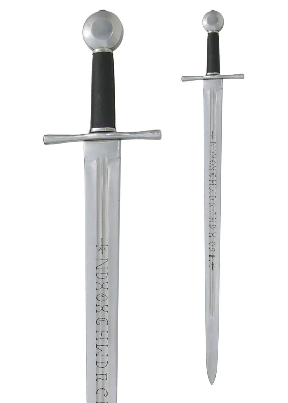 A lâmina desta espada é feita de aço carbono (AISI 1566), conferindo-lhe um toque e aparência autêntica da época. Esta lâmina também é afiada, o que a torna uma ferramenta perfeita para esgrima e para quem quer experimentar como é usar uma verdadeira espada medieval.