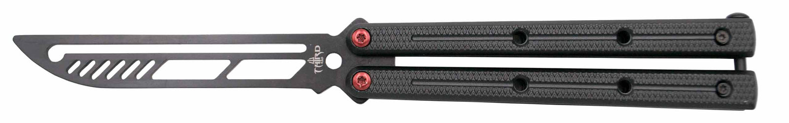 Terceira faca de prática K2921N, lâmina de aço 420 preta de 10,5 cm, aço inoxidável e cabo de alumínio preto. Referência K2921N