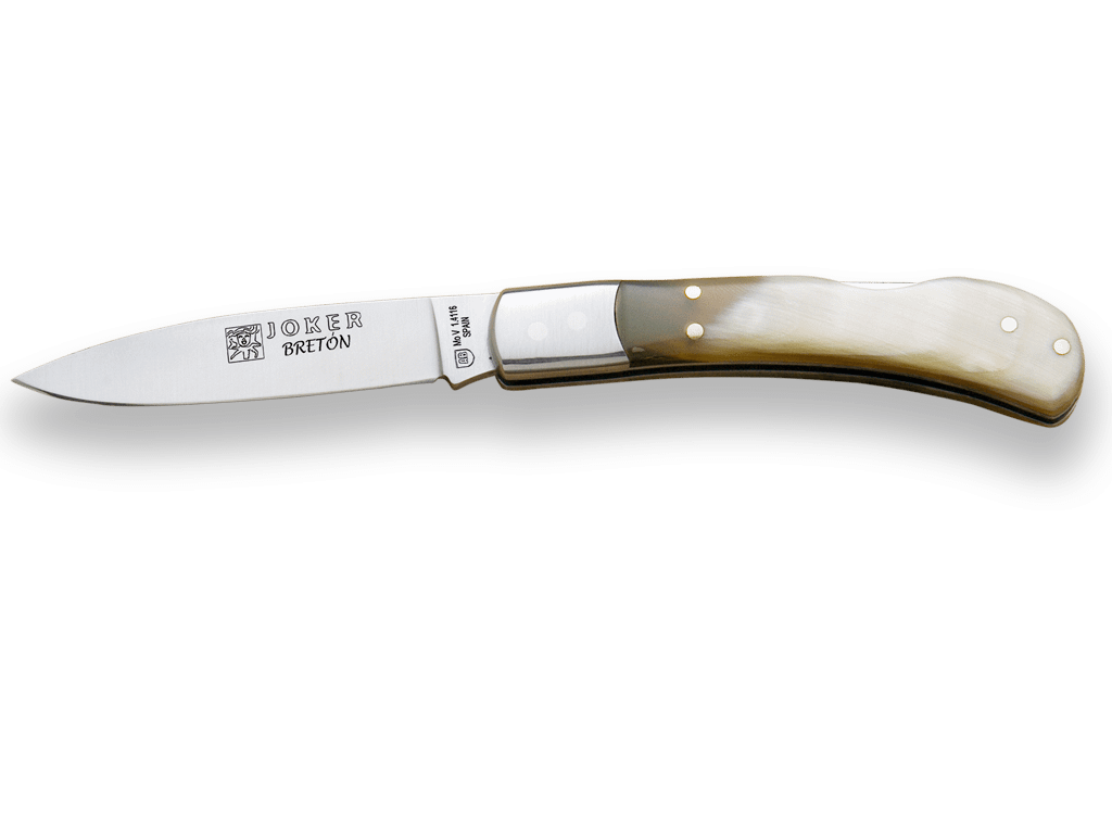 Canivete com virola de aço inoxidável e escamas de chifre de touro, trava e lâmina de 8 cm NA96