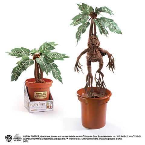 Pelúcia eletrônica de colecionador The Mandrake de Harry Potter. Puxe a Mandrágora e você ouvirá seus gritos. Apesar de suas propriedades altamente curativas, a mandrágora é uma planta que pode ser perigosa quando arrancada. Seu grito pode matar quem o ouve. Felizmente, ele fica quieto depois de armazenado na panela.